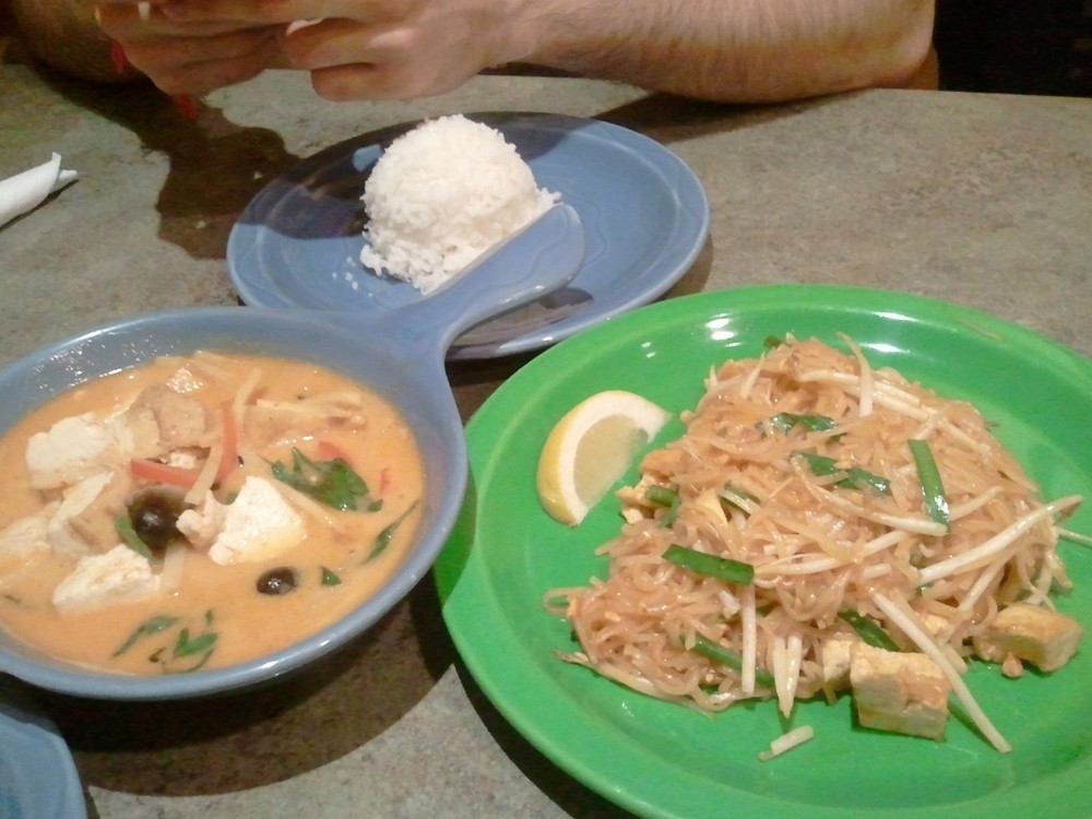 Thai, Chinese, Japanese… for a vegetarian they’re all the same. A good friend ordered Green curry (wasn’t spicy but had flavor) and rice with Pad thai noodles and the whole thing was pretty good. I like yogurt (curd) and love paneer but this tofu thing is pretty weird, feels like yogurt, is more like paneer. Not a big fan and this eliminates pretty much everything vegetarian in the Asian dishes for me. Then again, I am a fussy vegetarian.