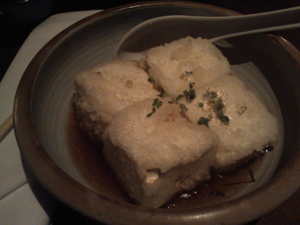 I had tofu at an expensive restaurant in India and found it to be absurd. The concept of eating pieces of hot yogurt seemed funny to someone who enjoys the spicy raita. Third wheel on a date I didn’t persuade friends to consider, I went along to Haru, a sushi restaurant. My appetizer was a dish called agedashi tofu. Sprinkled with spring onion and dipped in some liquid, these fried pieces of yogurt were weird. Of the four, I could jus eat two. Tofu seems to be an acquired taste to someone not from the region, while what I ate at Haru wasn’t to my liking, it was certainly not bad.