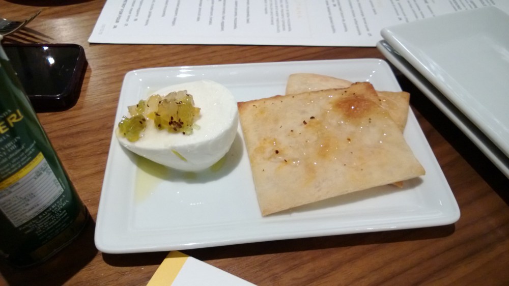 Stella 34 has really good food. It is a nice restaurant but the lightings from Macy’s disturb the ambiance if the restaurant. With beautiful view of the Empire State, Stella 34 is a must-go. My first appetizer was fresh mozzarella cheese and it was a really fine clock of cheese. Served with some fruity toppings and crisps, it was a well thought-out appetizer.