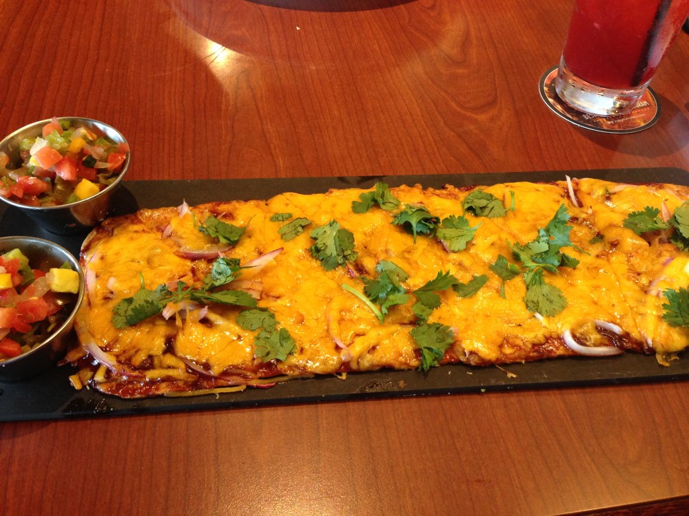 The chicken flatbread pizza with cilantro and onions without the chicken sounded like a safe option but what came was an explosion of taste as I ate it. What made it so delicious was the barbeque sauce.