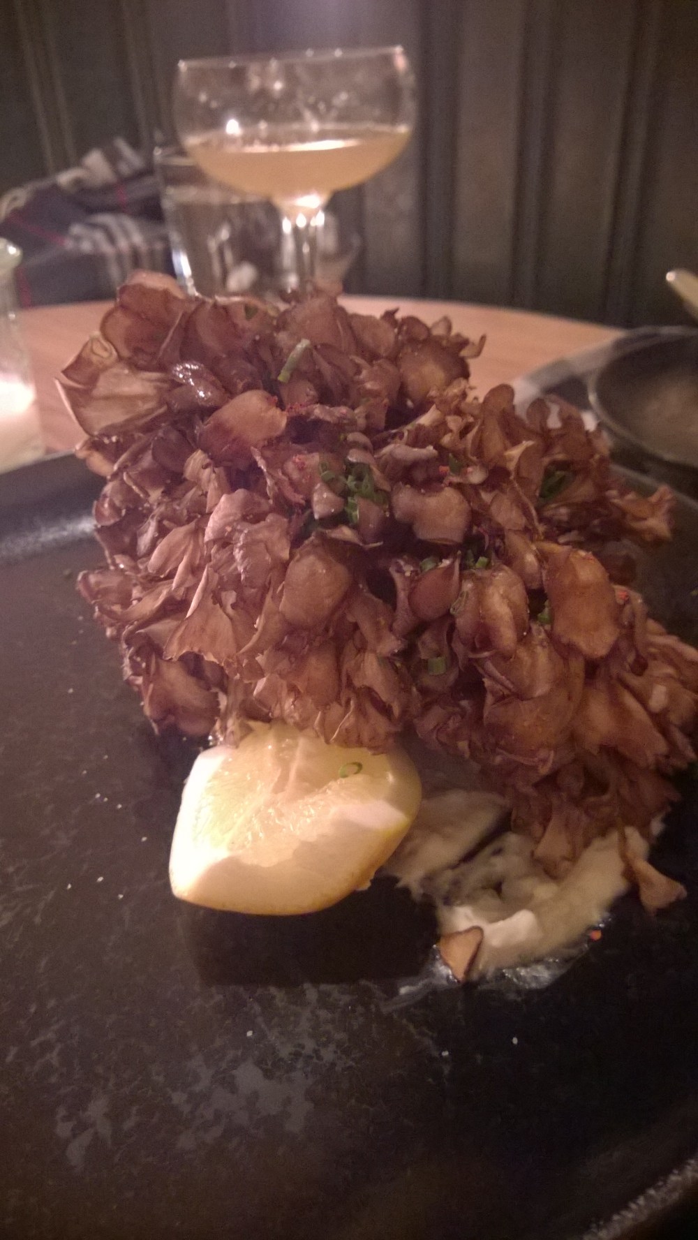 Every once in awhile I go to one of the higher end restaurants and Upland was one of those. Limited on a vegetarian menu I did not want to try their pizza. My friend recommended the Whole Crispy Mushroom and although I don’t like mushrooms, I went for it.