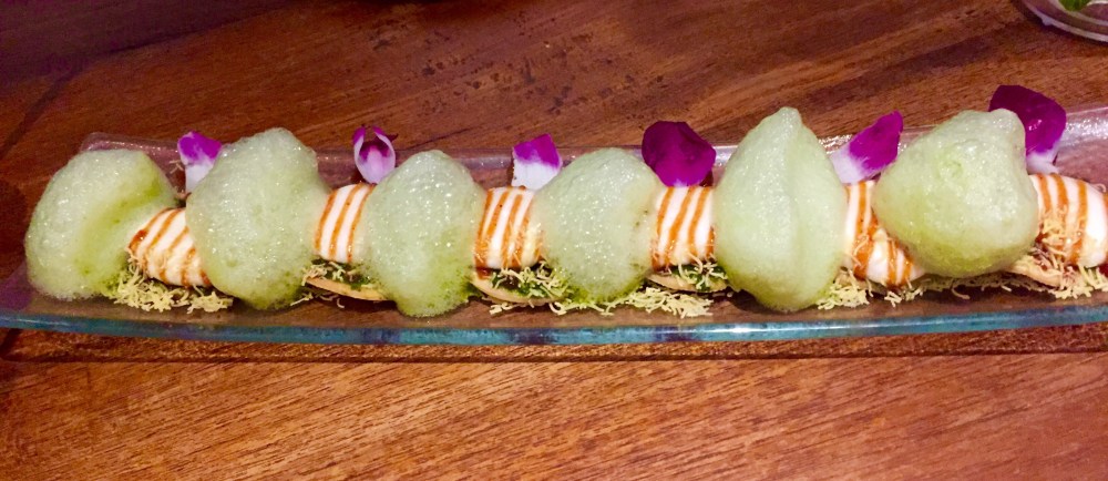 Chaat appetizer with green chutney foam (whoever thought of chutney as foam?! Genius!)