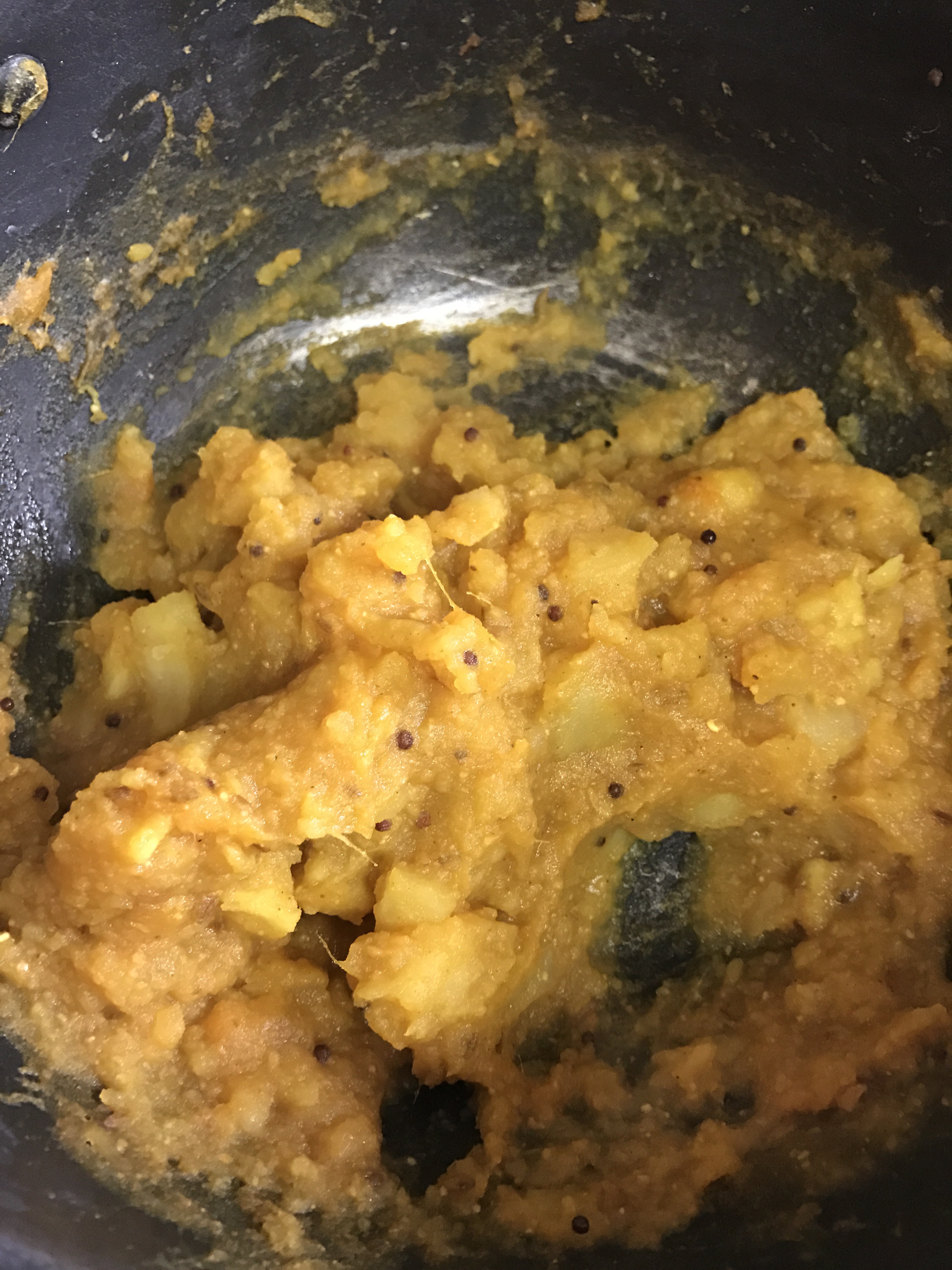 Then, you make some rotis (I have frozen Indian rotis which I just heat), butter it up: