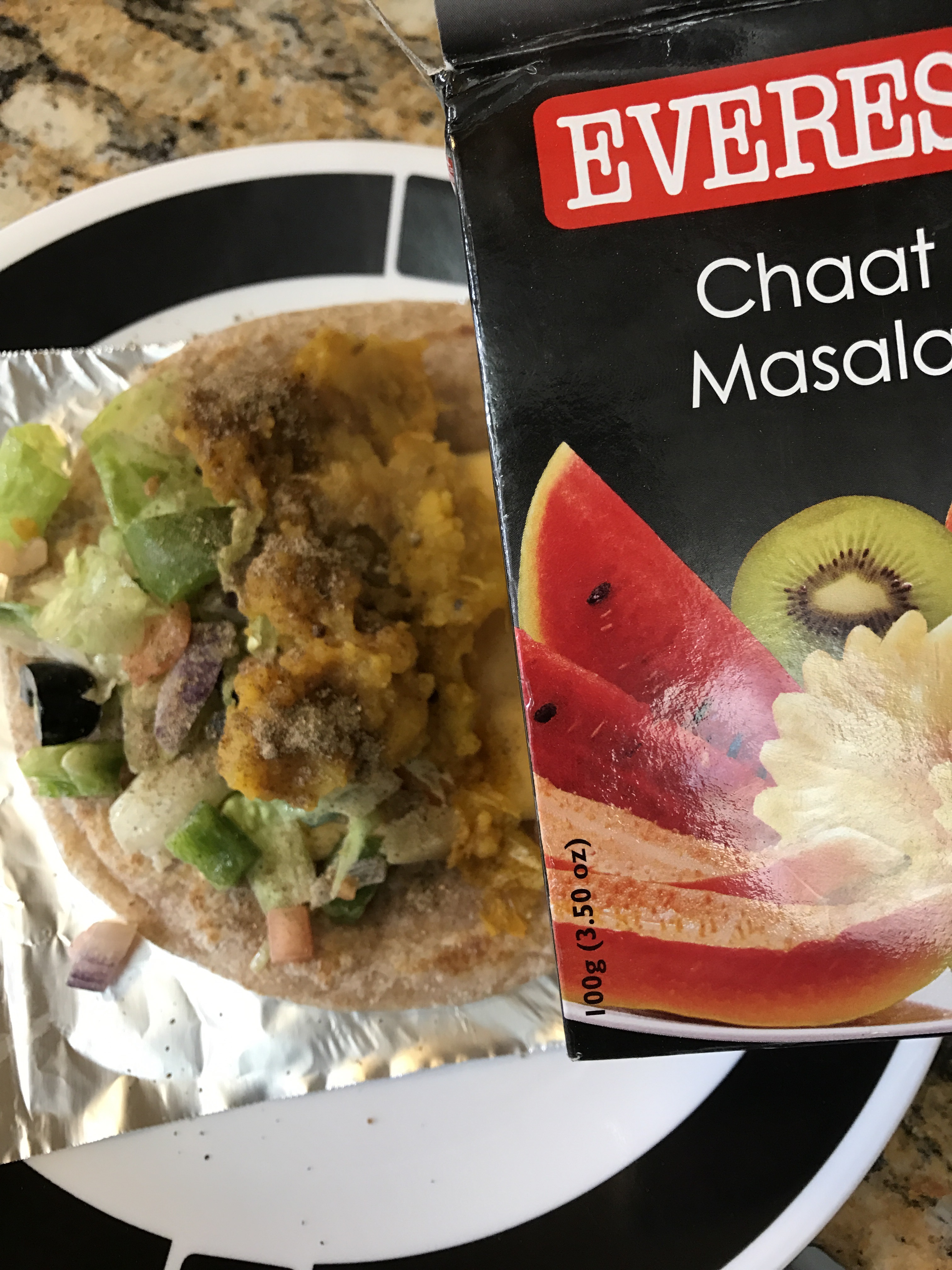 This is an Indian snack so it needs to have a lot of chaat masala and lemon juice: