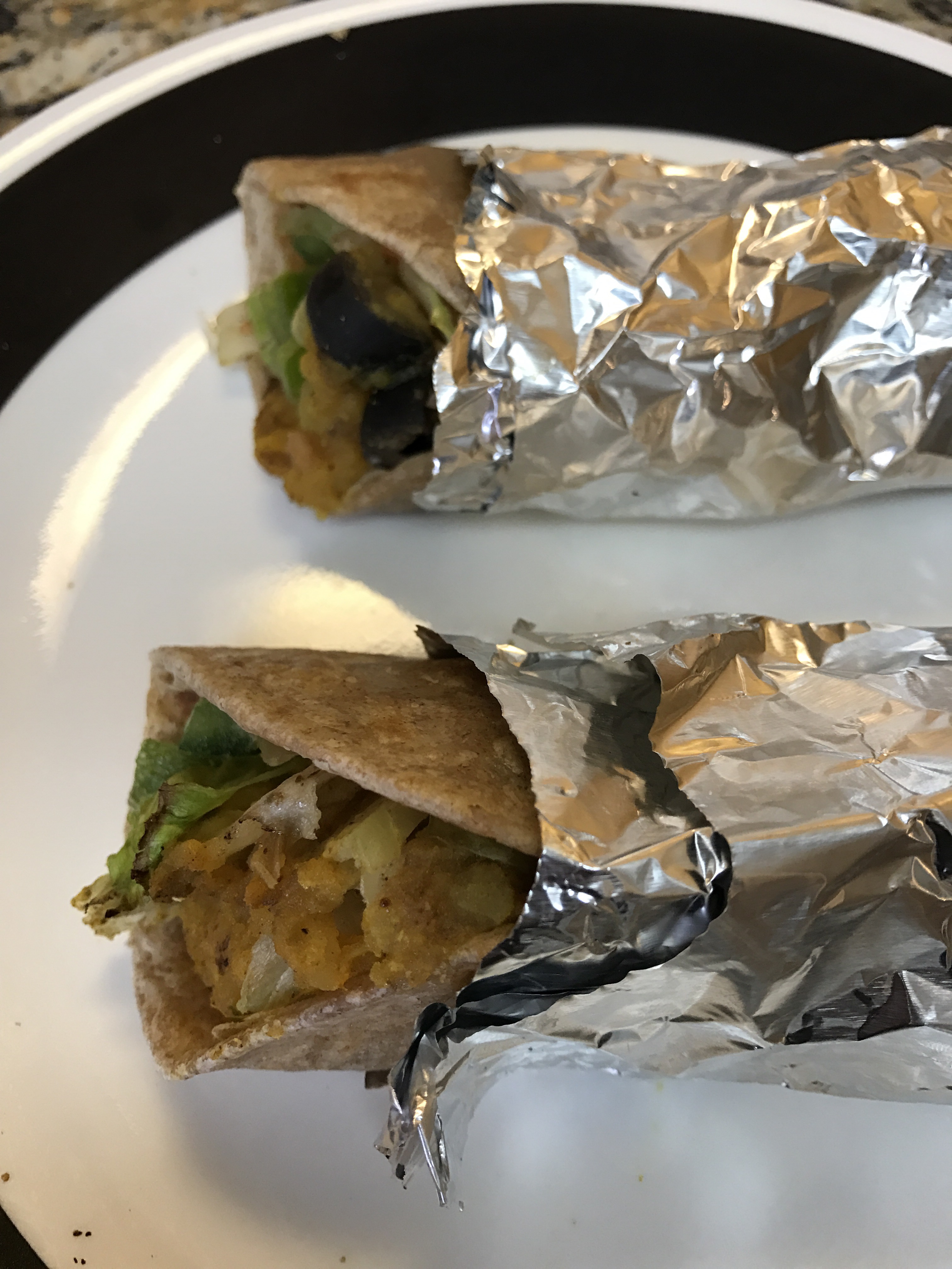 Now I had these veggies chopped but I wasn’t in the mood of a salad. So, I made myself a delicious AF veggie roll.