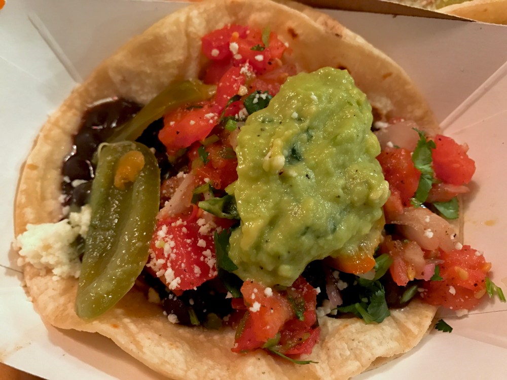 At Oaxaca Taqueria, they seem to understand that vegetarian is more than mushrooms. And their poblano peppers with pickled onions bring flavors to the tacos. 2 types of vegetarian tacos that are simple but enhanced with spice and tang.
