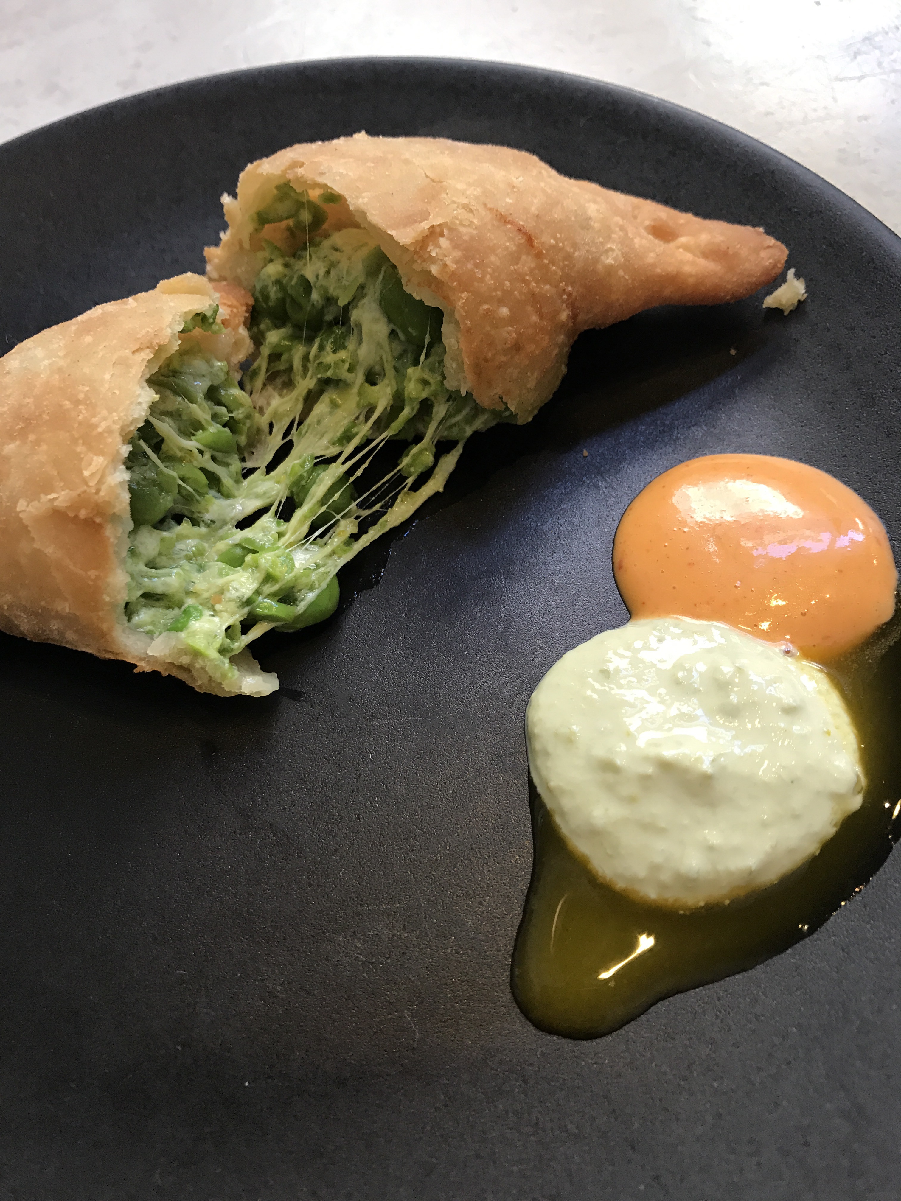 Gooey empanadas filled with greens Posted by manan on May 7, 2017 Restaurant: ABC Cocina, NYC Spring peas empanadas Share this: Click to share on Facebook (Opens in new window) Facebook Click to share on X (Opens in new window) X Click to share on Pinterest (Opens in new window) Pinterest Click to email a link to a friend (Opens in new window) Email Click to share on WhatsApp (Opens in new window) WhatsApp Like Loading... Related