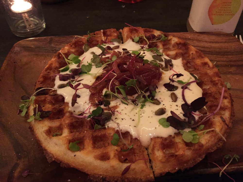 The Dosa Waffle at chef Viraj Borkar’s Inday is no exception. It’s a delightful combination of Indian and American cultures topped with intriguing options like yogurts and onions: