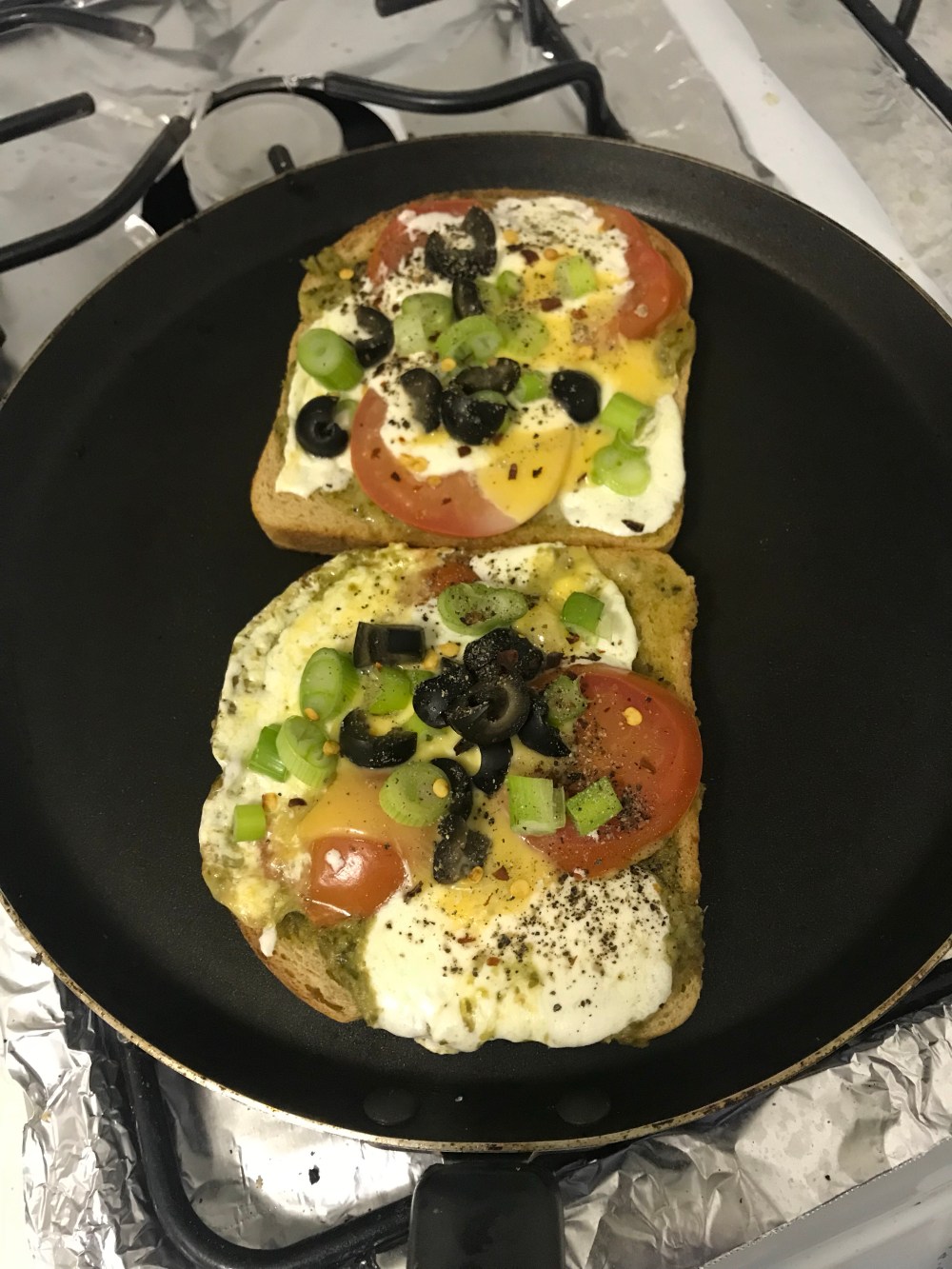 I’m always on the look out for quick to make food using a bunch of random ingredients in my refrigerator. Here’s a cheese and veggie slice that looks nice & tasted great.