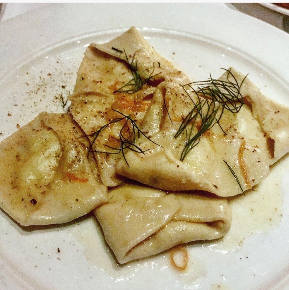 Here’s the Goat Cheese Tortelloni With Dried Orange and Wild Fennel Pollen with the very visible butter: