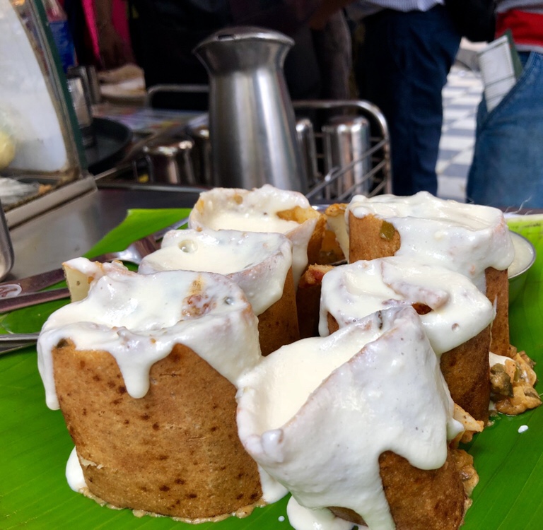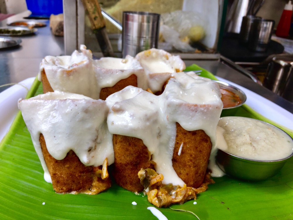 No seats to sit, no roof to stand under, the yells of people, the honks of cars, the overwhelming traffic noise, and this little stall offers one of Bombay’s most viral food plates.