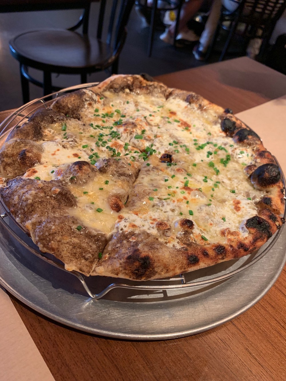 This pie served at @publickitchennyc is expensive. And it’s worth it. Black truffle 4 cheese pizza.