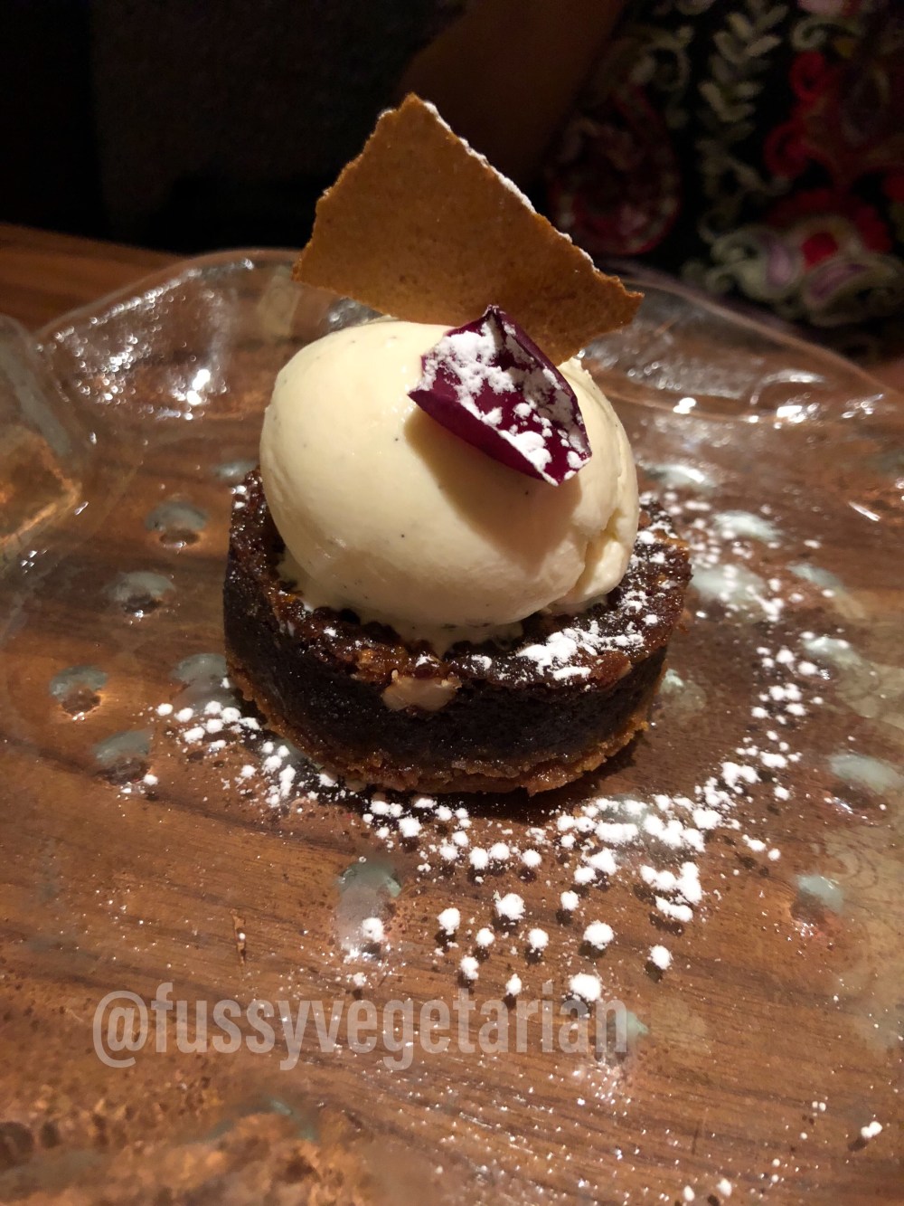A date cake for a great dinner date: this delightful date (the dry fruit) cake topped with ice cream and a cracker on top.